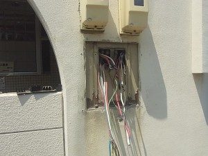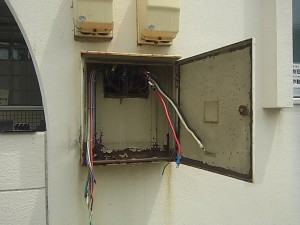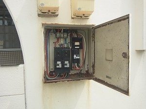 経年劣化や雨水の侵入などで、漏電や錆付き等の支障が出ないよう、配電盤の鉄箱を取換致します。